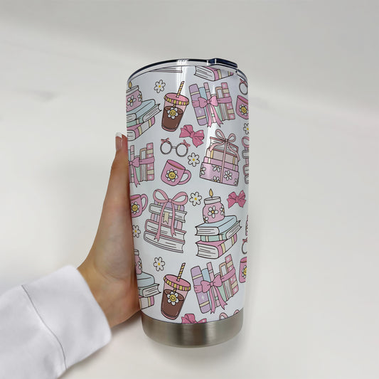 Bookish Boba Tumbler – 20oz & 40oz Pink Aesthetic Cup