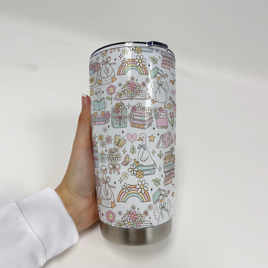 Bookish Floral Rainbow Stainless Steel Tumbler
