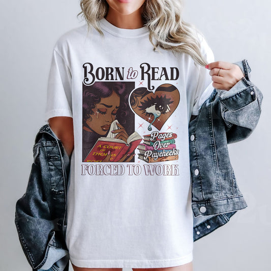Born to Read, Forced to Work – Pages Over Paychecks Tee