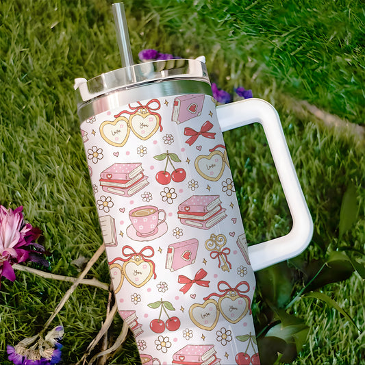 Bookish Love Aesthetic Tumbler with Handle – 40oz Stainless Steel
