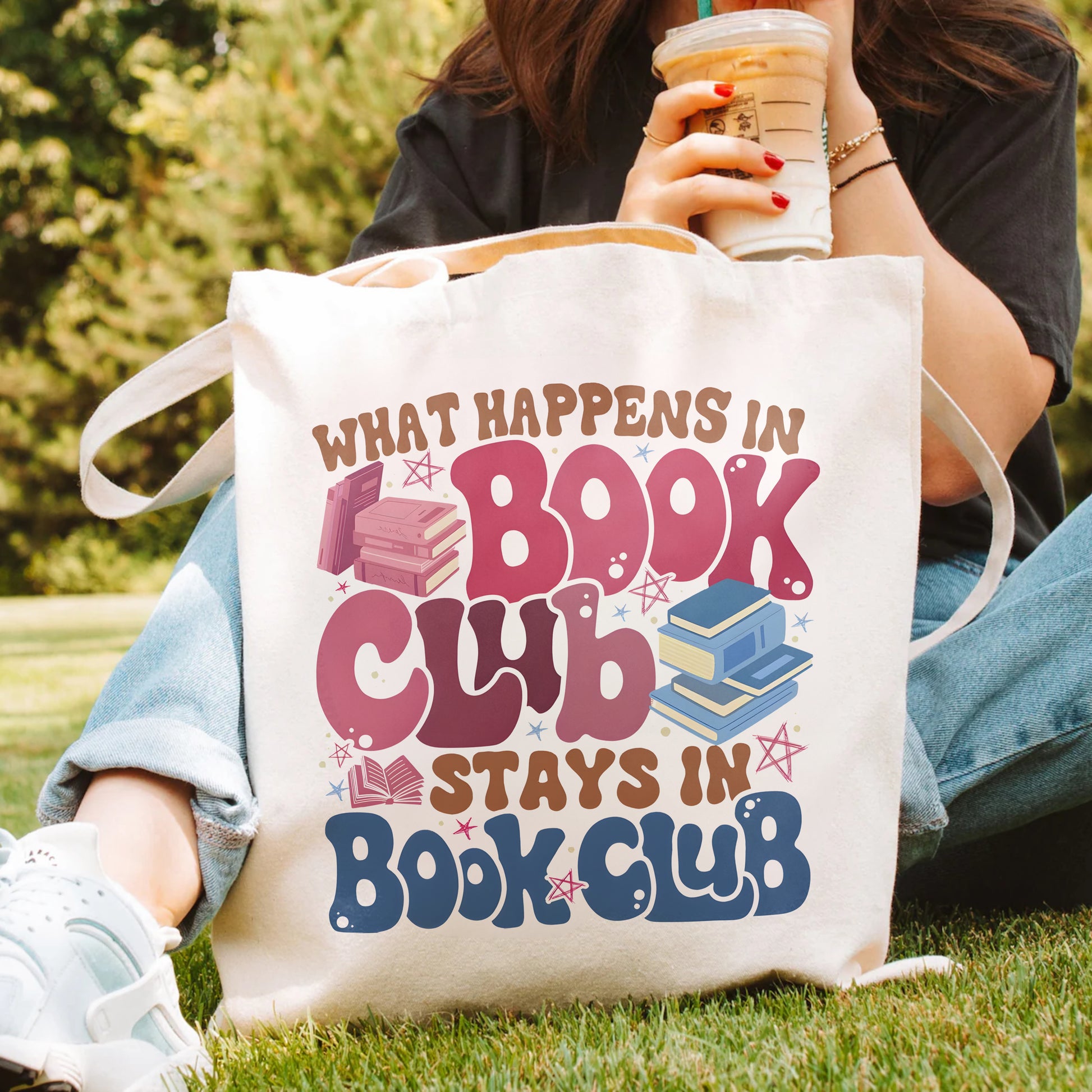 Spice up your next meeting with this fun and cheeky Book Club tote! With retro fonts and playful colors, this design boldly states: “What happens in book club stays in book club.” Perfect for carrying your current reads, wine, or secrets between chapters.