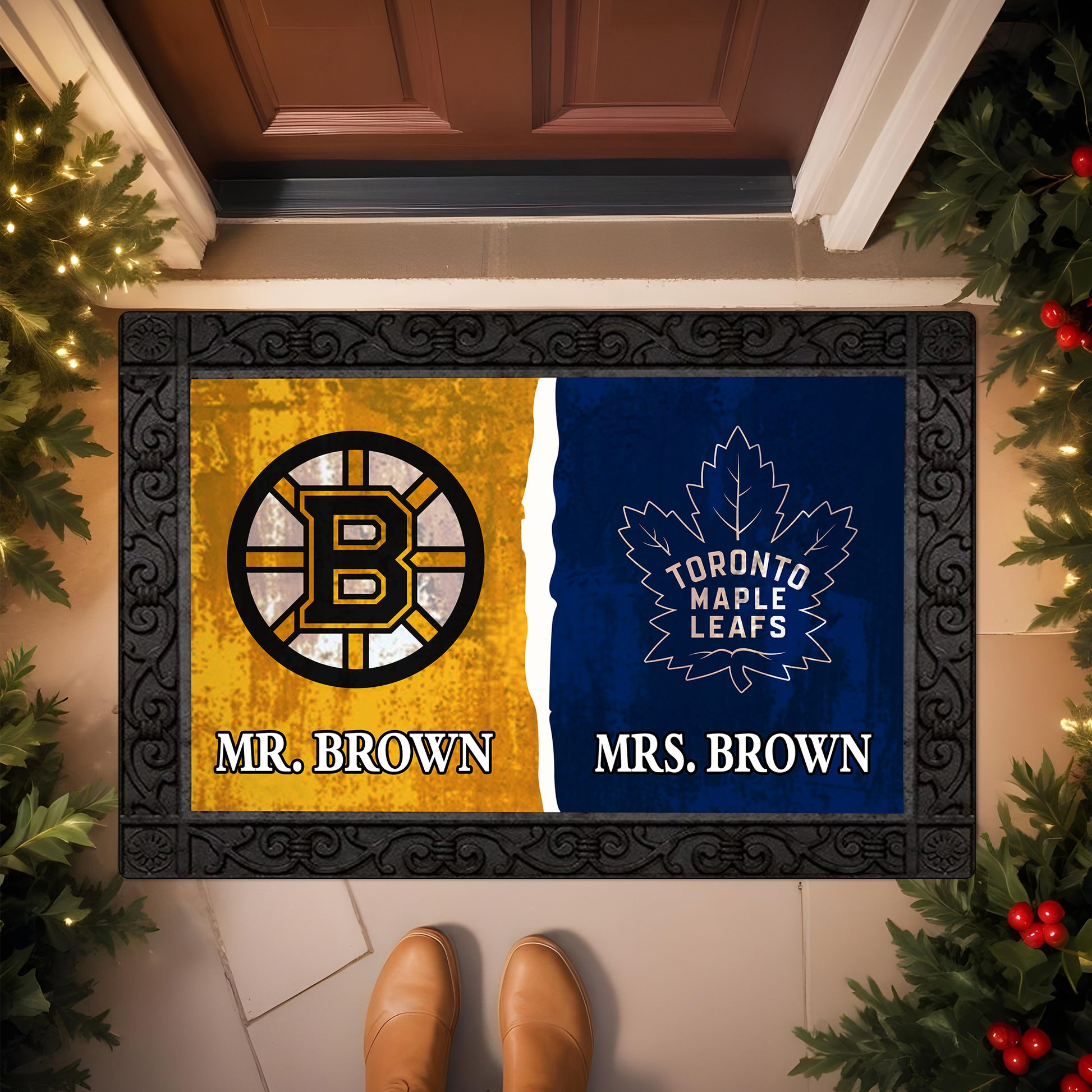 House Divided Doormat Custom Husband, Wife Name And Choose Your Team, Gift For Family ETRG-62671