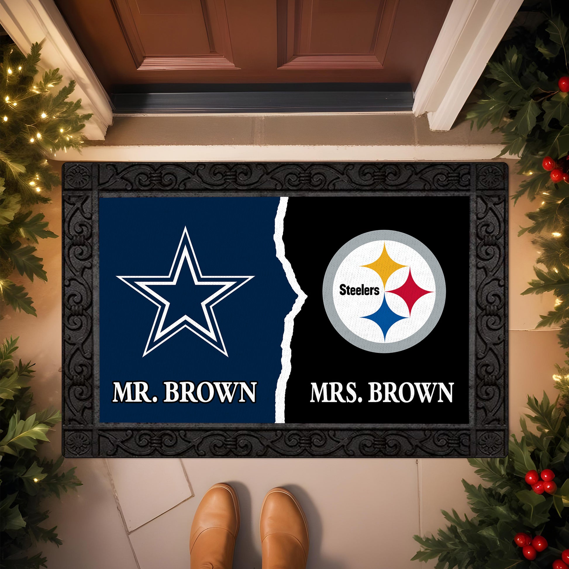 House Divided Doormat Custom Husband, Wife Name And Choose Your Team, Home Decor ETRG-62676