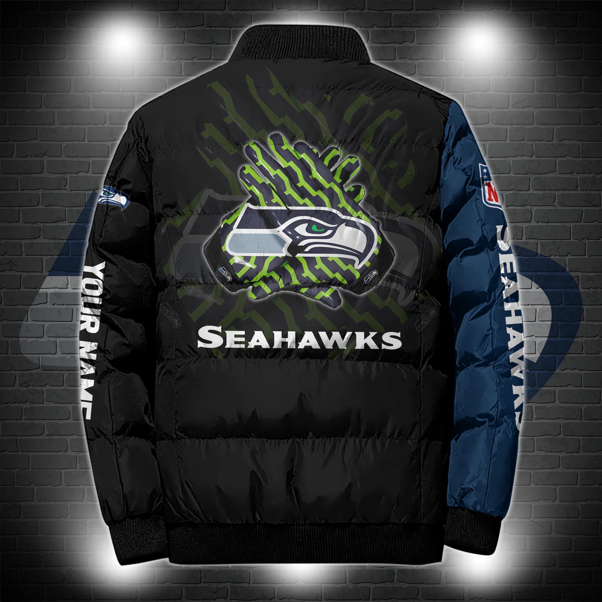Seattle Seahawks Puffer Jacket Custom Name, Sport Jacket For Fans ETRG-44921
