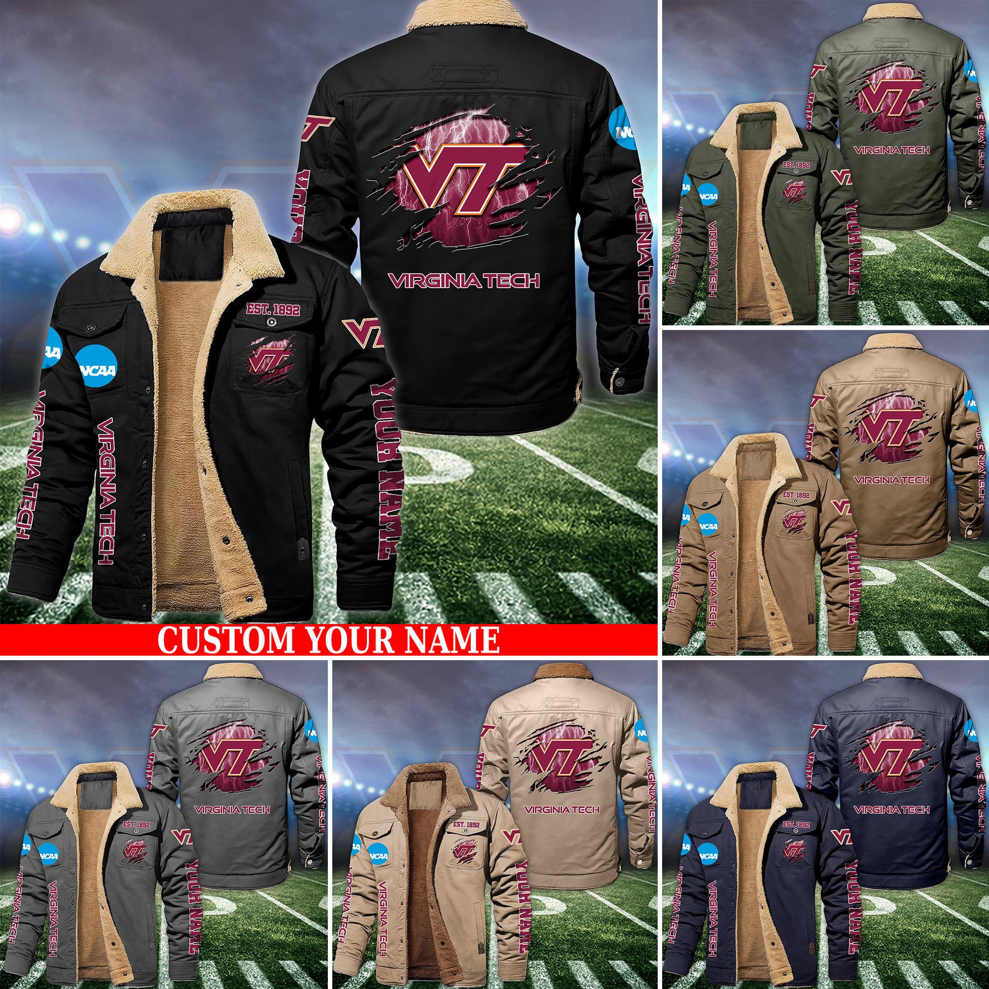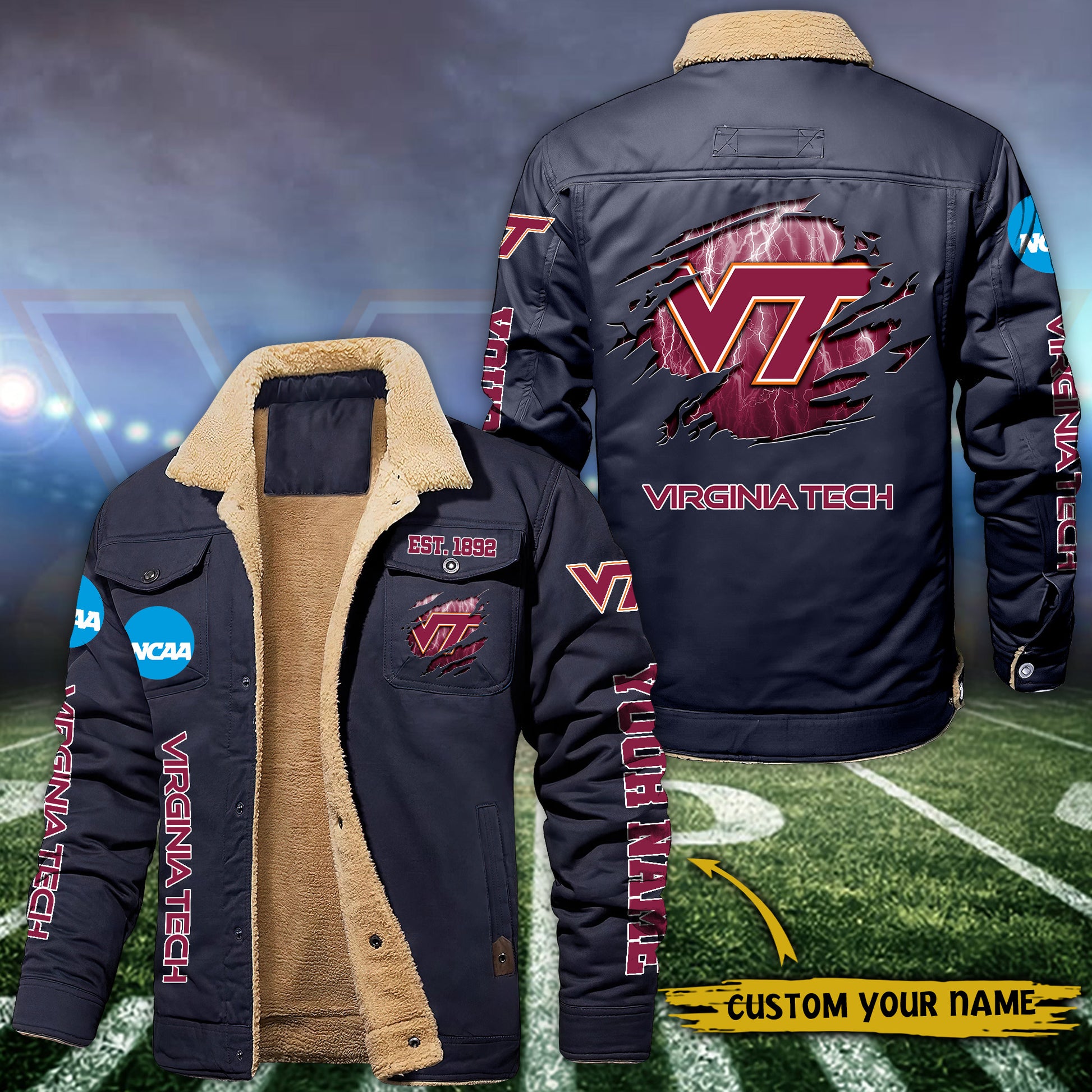 Virginia Tech Hokies Fleece Lined Cargo Jacket Custom Your Name 2026 Version EHIVM-53730